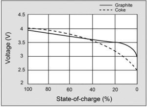 Kết luận: Pin cần có đường cong điện áp xả phẳng trong phạm vi yêu cầu. Anode than chì hiện đại có biểu hiện tốt hơn so với phiên bản than cốc ban đầu